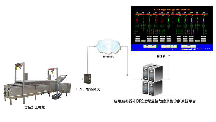 HINET智能網關通過與食品加工機械的核心控制器(如PLC等)連接,結合3G、WiFi、以太網及GPRS等通信方式并通過華辰智通專有的安全通道實現與服務器連接,實現設備的遠程監控及管理控制,并通過HDRS平臺強大的數據分析能力,分析來自控制器的各種數據,結合客戶自己設定的預警值實現對設備的故障預警及診斷功能。HDRS遠程安全通訊網關具有體積小巧、安裝方式簡單(導軌安裝)等特點,整套系統無需改變食品機械的基本原有構造。